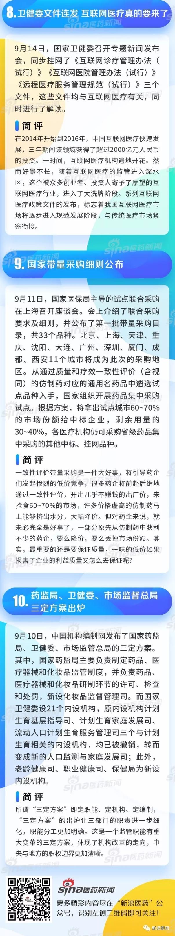 九月份大哥们手持“大刀”就问一句你怕了没?不管是国家医保局的“带量采购”,亦或是国家卫健委的“互联网医疗”,还是国务院办公厅的完善“基本药物制度”,都足以让行业震上一震。这其中,尤以国家医保局的“带量采购”最为惊艳。
